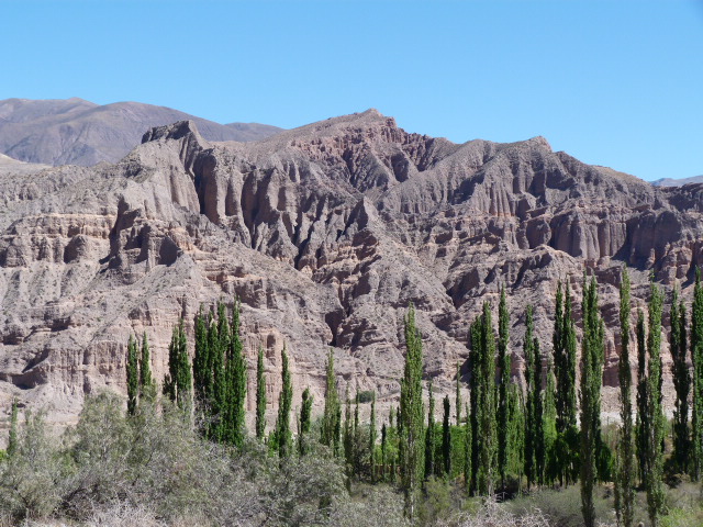 Em Salta, nos surpreendemos, achamos que a cidade era um pouco menor, e que não haveria tanta pobreza. Tinha um morro muito peculiar que estava bem seco e no por do sol parecia um morro de pentelhos… hehehe muito engraçado. Tivemos uma parada rápida no shopping da cidade. Motivo: estacionamento seguro, caixas automaticas e comida com higiene. E para nossa sorte, encontramos um restaurante de cozinha andina. Que DELICIA, dava vontade de ficar por lá uma semana para poder experimentar todos os pratos e sobremesas. Como tínhamos pouco tempo nesta região resolvemos pular a parte dos monumentos históricos e museus para seguir direto para a região de Jujuy.