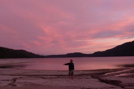 Assim que começou a escurecer, começamos a procurar um camping, mas o único que encontramos estava fechado e a região não é muito propícia para acampar, em geral é tudo muito plano e faz muito vento pela Tierra del fuego.