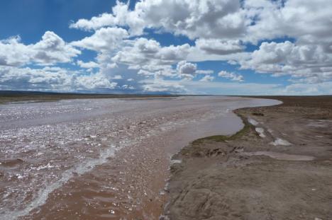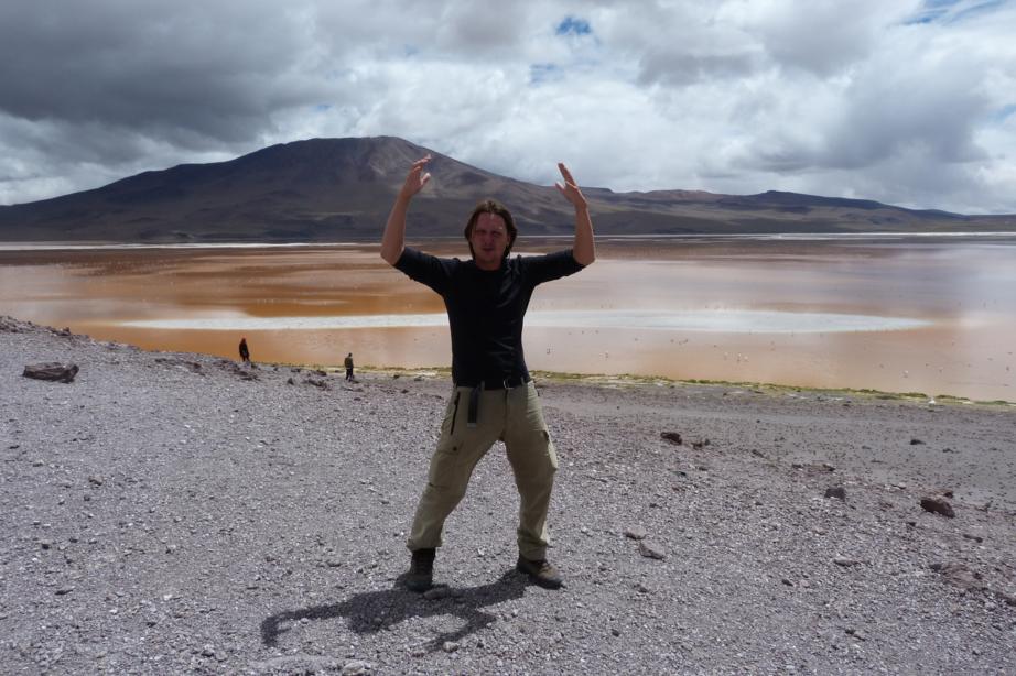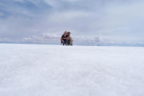 Queríamos abastecer para seguir viagem com mais segurança, mas a maioria dos postos estavam fechados e o único que estava aberto não vendia combustível para estrangeiros. Pedimos para um boliviano se ele poderia comprar diesel para nós, mas ele também negou. Arriscamos a dirigir no limite e enfim chegamos ao lago Titicaca, já era tarde da noite e ainda alcançamos a última balsa para Copacabana, quer dizer, barco com motor, com chão de bambu e umas tábuas para sustentar o carro. Sinistro, ainda bem que o lago estava um espelho. O céu estava absolutamente lindo, não me lembro de ter visto o cruzeiro do sul tão brilhoso, quem iria adorar é a mãe do Julio que adora admirar as estrelas. Por sorte o combustível foi suficiente para chegarmos a Copacabana. Achamos um hotel muito barato, o Julio quase não acreditou, pois a estrutura era bem boa. Dormimos felizes e no meio da noite uma forte tempestade começou e o Julio acordou com um trovão assustado pensando que era um terremoto, foi divertido. Mais divertindo ainda foi ouvir no outro dia um turista bicho grilo perguntar se os trovões vieram da Ilha do Sol. A recepcionista do hotel, rindo, disse que sim. Tem muitas lendas místicas com relação à ilha e qualquer balela que contarem aos turistas eles acreditam.