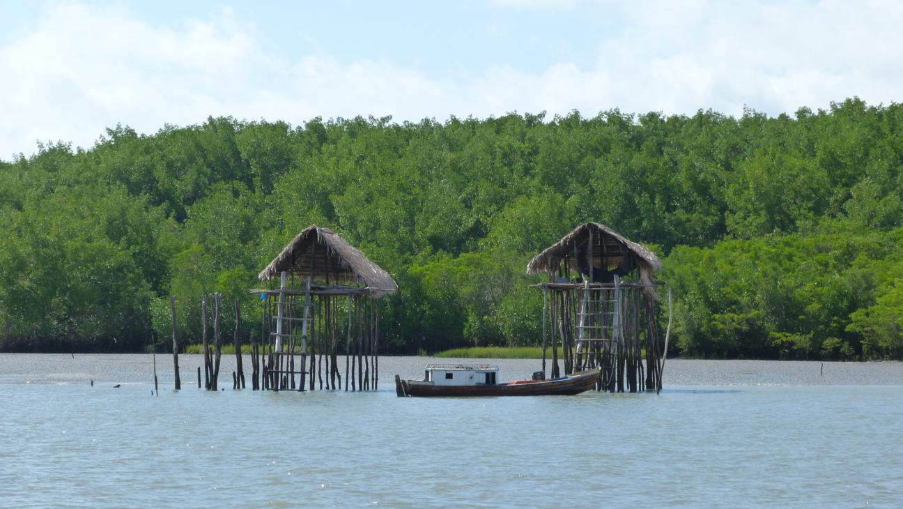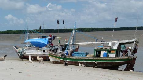 Os barcos vão até essa ilha para aguardar a baixa e cheia da maré e aproveitam para fazer o almoço. Lá existe uma pequena vila com casas de palha em palafitas, uma comunidade muito pobre que vive da pesca de peixes e camarões.  Não existe nenhum comércio, bar ou restaurante. Os barcos ficam ali esperando a maré baixar até que a água desaparece por completo o mar vira terra, milhares de caranguejos emergem e guarás vermelhos aparecem um busca de comida. Os pescadores nos prepararam um delicioso peixe, mas eles comeram frango, foi durante o almoço que vimos eles agradecerem a Deus pela comida e pedir que suas famílias também tivesse em casa a mesma fartura. Ao redor dos barcos ficam uma dúzia de cachorros magros e famintos em busca de migalhas que todos os barcos fazem questão de deixar pra eles. Brincamos com o cozinheiro que logo apelidamos de Maria, enquanto a maré não sobe, eles aproveitam para organizar as redes, limpar o casco dos barcos e jogar muita conversa fora. Para voltar pegamos um outro barco e ao tentar pagar pela viagem e o almoço, descobrimos mais uma vez que existem pessoas realmente boas nesse mundo, eles não aceitaram e com muita insistência conseguimos deixar um troco para que eles pudessem pagar a cachaça da festa junina. É surpreendente ver pessoas que tem muito pouco compartilharem o que tem. Esses são ensinamentos que não se aprende na escola!