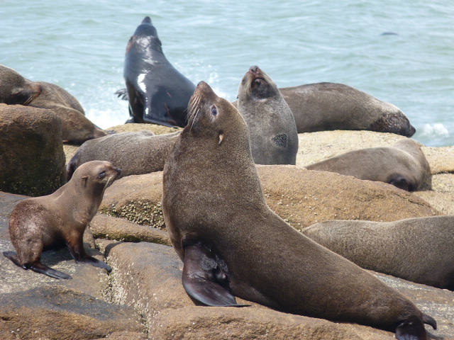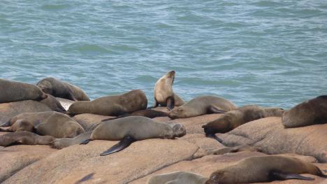Seguindo o costão, você fica vidrado apreciando os lobos marinhos que estão estarrados nas pedras. Eles ficam se espreguiçando, se limpando e discutindo uns com os outros. Tem até barraco no pedaço, parece as vezes que tem um grupo de mulherzinhas discutindo pelo namorado. E você vê tudo isso bem de perto… é vidrante.