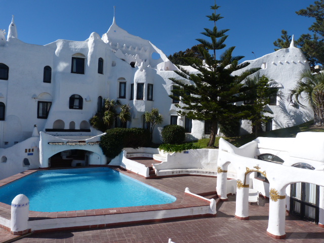 Susto! Saindo de praias tranquilas para a ostentação. Ficamos muito impressionados com a riqueza (de “plata”, não de natureza) da cidade. Coisa de primeiro mundo. Punta del Este é uma cidade muito bem planejada  e organizada. Tem muitas opções de restaurantes com comidas internacionais, bares noturnos, cassinos e hotéis caros. Bom gosto é o que não falta na arquitetura dos casarões com seus jardins muito bem elaborados e gramados tipo teletubbies que parecem verdadeiros tapetes verdes.