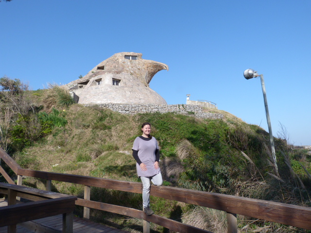 Seguimos em direção a Atlantida para visitar a Casa da Águia. Um italiano muito doido fez uma casa à beira mar nos anos 50 com formato de uma cabeça de águia. Existem várias teorias com relação a essa construção. Uma delas é que a casa fosse um simbolismo ao nazismo. Será?